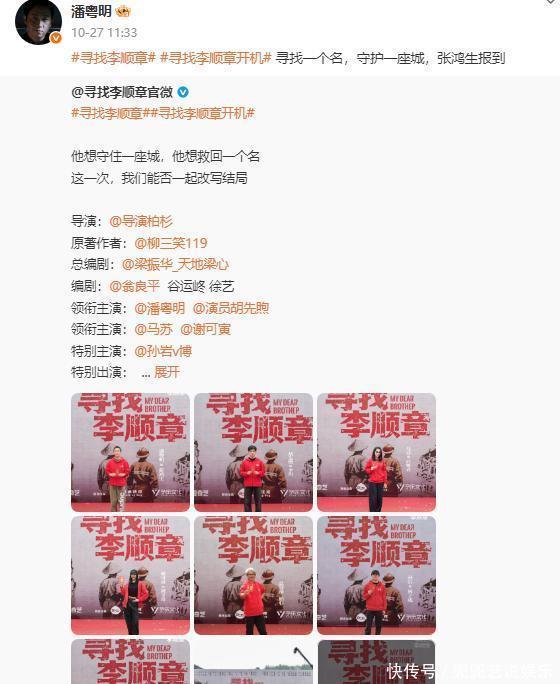 如今两人早已过上了不同的生活,就在前不久,潘先生还宣布了一个好消息。新戏开拍10月27日,他在网上转发了一条官方动态,他的新戏《寻找李顺章》开机了。